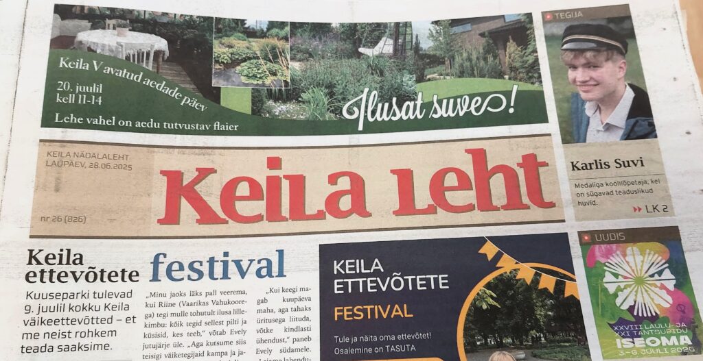 Nädala alguse puhkepäevade tõttu ilmus Keila Leht täna. Keila Lehes: Keila ettevõtete festivalist. Uudistes laulu- ja tantsupeost, õhuväe uuest ülemast. ehitustest Tallinna maanteel ja Linnuse tänaval, maakonnaliinidest, kontserdist kirikus, maakonna kauni kodu konkursist, jalgrataste maastikukrossist ning Keila Lehes reklaamimise hindadest. Tegija on Karlis Suvi. Lehe vahel on Keila V avatud aedade päeva flaier. Toimetus tõmbab nüüd veidi hinge ja ilmutab järgmise lehe 31.juulil, toimetus tegutseb alates 28.juulist.