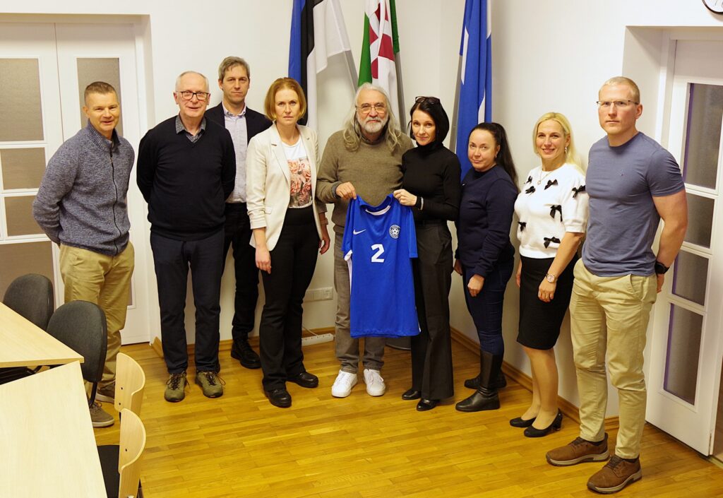 Keila Linnavalitsuses käis täna külas Eesti Jalgpalli Liidu esindus eesotsas liidu presidendi Aivar Pohlakuga, saatjaks Keila Jalgpalliklubi juhid. Kohalike omavalitsuste ringkäigul tutvustab liit oma arenguplaane ja eesmärke, tundes huvi kohaliku spordi-, ja ennekõike jalgpallitaristu arengu vastu. Pildil vasakult Keila Jalgpalliklubi juhatuse liige Alar Anton, jalgpalliliidu infrastruktuuride direktor Tõnu Sirel, jalgpalliliidu tippliigade tegevjuht Teet Allas, abilinnapea Anneli Pärlin, Jalgpalliliidu president Aivar Pohlak, linnapea Keiu Valge, jalgpalliliidu juhatuse liige Monica Rand, abilinnapea Merike Käver ja Keila Jalgpalliklubi tegevjuht Tauri Tamkivi.