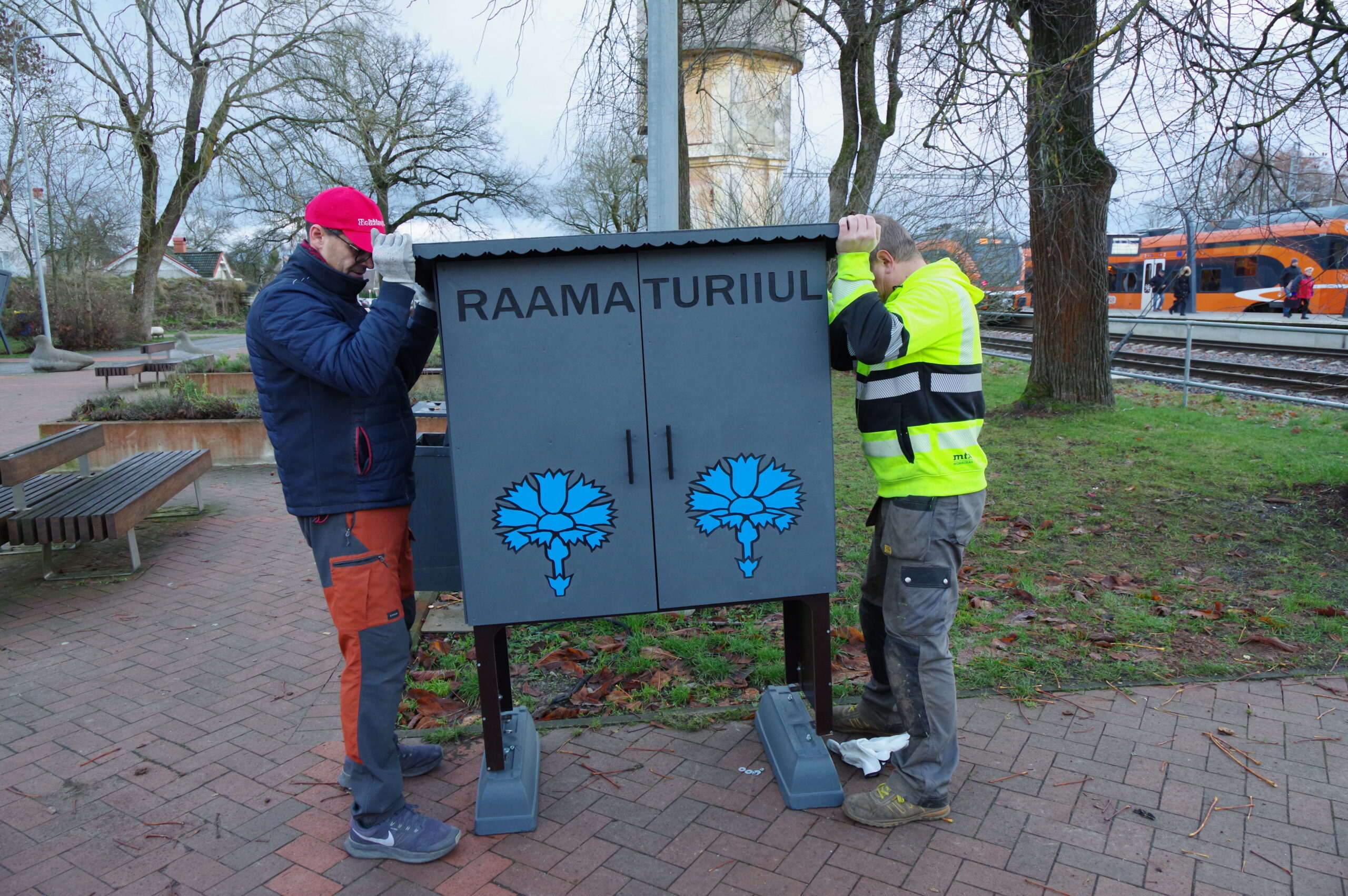 Täna hommikul sai Keila jaama üles raamatukapp, mis on soetatud selle aasta Hoovilugude päeval Linnavalitsuse katusekohvikul teenitud tulu eest. Aitäh kõigile kohviku külastajatele! Ilmastikukindla kapi ehitasid ja panid paika Nokitsejad. Esimesed raamatud panid sisse abilinnapea Janne Sirel ja linnavalitsuse infoturbejuht Katrin Leppik. Tahad kapist raamatut lugemiseks võtta, too teine asemele! Või kaks, või kolm. Raamatuvalikut võib igaüks rikastada.