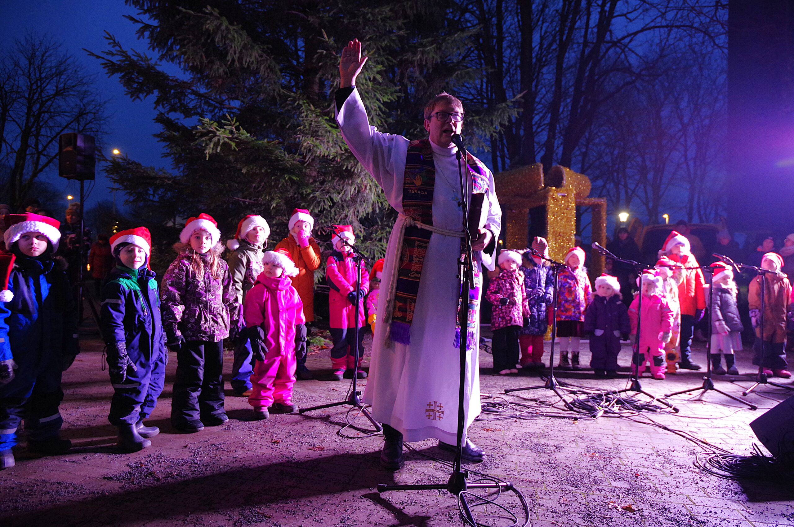 Advendilaat Kultuurikeskuse ees. PILDID. Lasteteater „Sõber” etendus „Okkaline lugu“, jõuluvana Albert, jõuluvana postkast, fotoboks. Jõulurahu kuulutas Kuusepargis välja EELK Keila Miikaeli koguduse õpetaja Arnd Matthias Burghardt, kes koos linnapea Maret Pärnametsaga jagas advendituld kõigile soovijatele koju viimiseks. Esinesid Bel Canto laulustuudio, Viis Tooni laulustuudio õpilased ja kammerkoor Toonika. PILDID