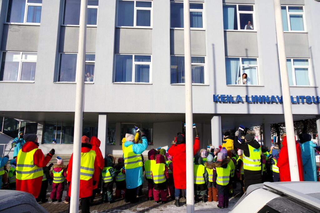 Rukkilille lasteaed on alustanud Eesti Vabariigi sünnipäeva tähistamisega. Täna tehti matk Keilas – lippude lehvides peatuti ka linnavalitsuse ees ja lauldi pidulaulu. Aknal tervitas paraadilisi ka linnapea Keiu Valge.
