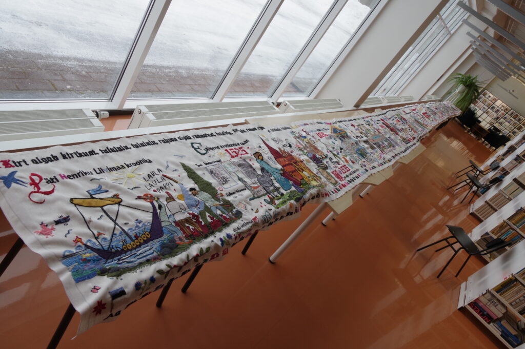 Harju Maakonnaraamatukogus on homme, laupäeval võimalus näha 17 meetrist imet – tikitud piltvaipa eestikeelse raamatu ajaloost, mis ootab ootab voodri kinnitamist. NB! Reedel, 27.veebruaril on raamatukogu suletud! Laupäeval aga on just paras väike jalutuskäik raamatukokku ette võtta! Esmaspäeval õmblevad Lembe-Maria Sihvre ja Tiiu Jalakas nädalavahetusel siia jõudva (samuti tikanditega kaetud) voodri külge, siis rändab piltvaip Rahvusraamatukokku raamatuaasta konverentsile ja seejärel Tartusse ERM-i.